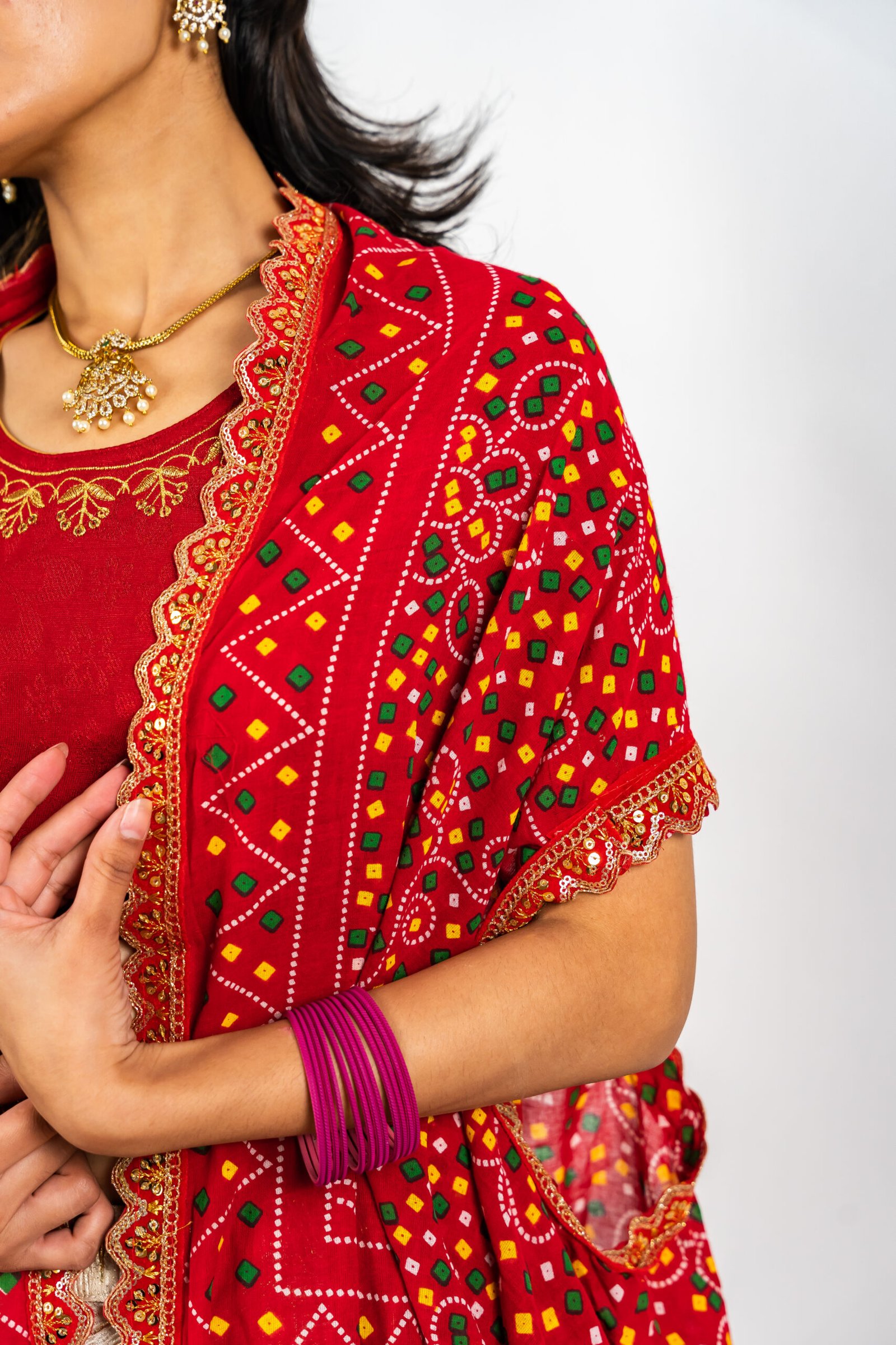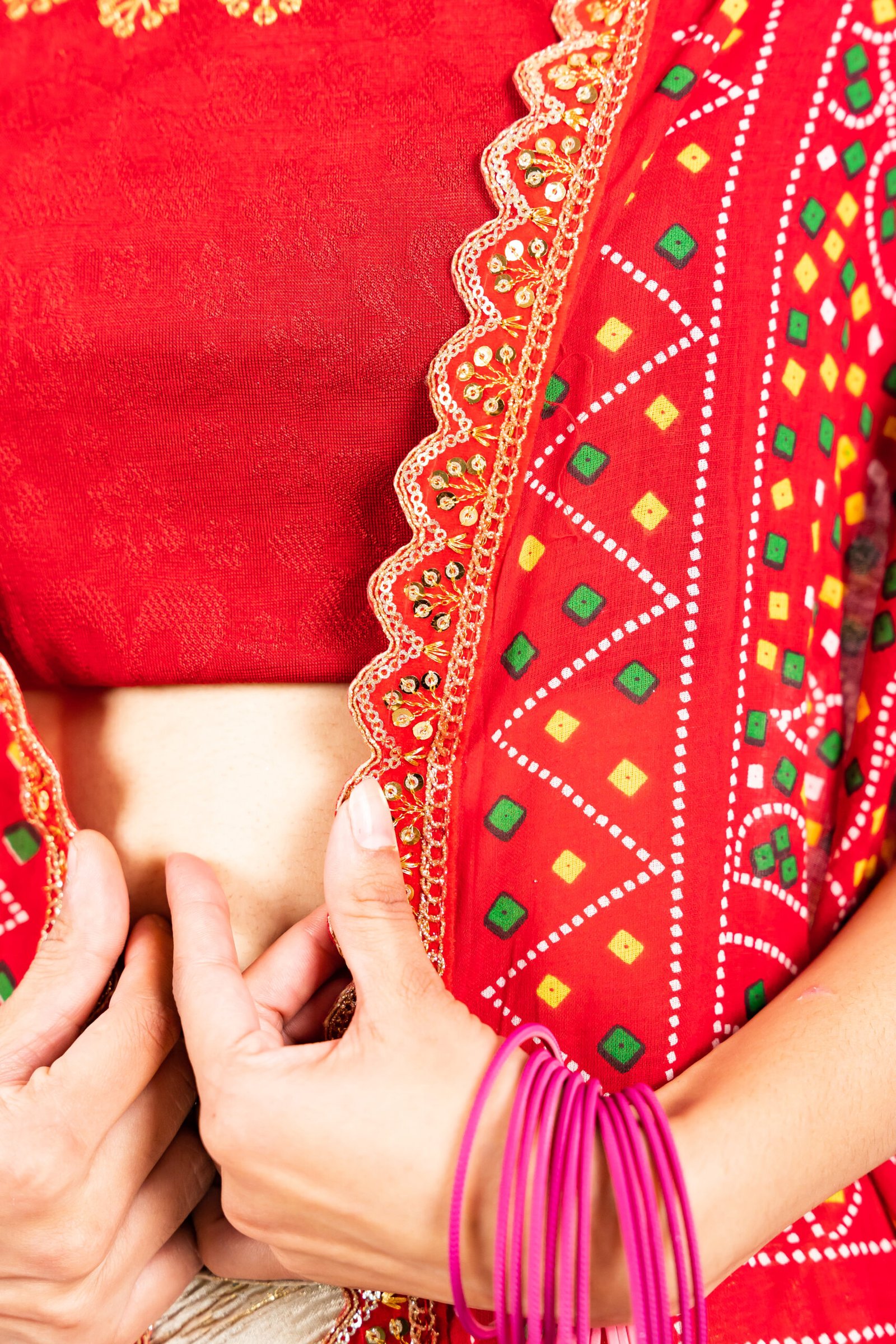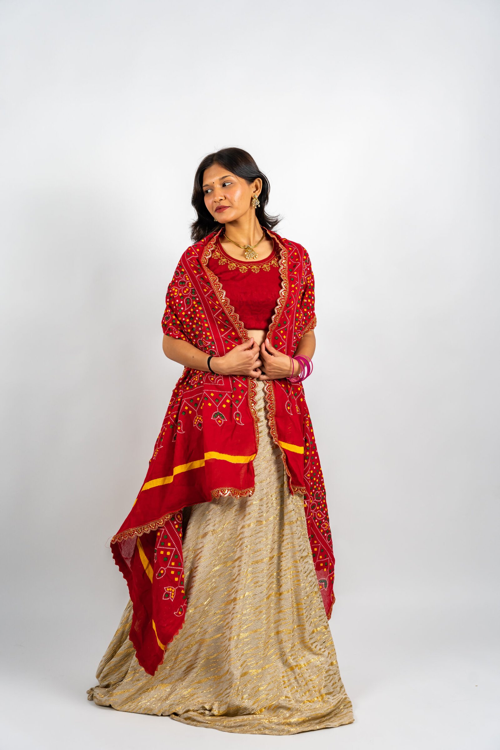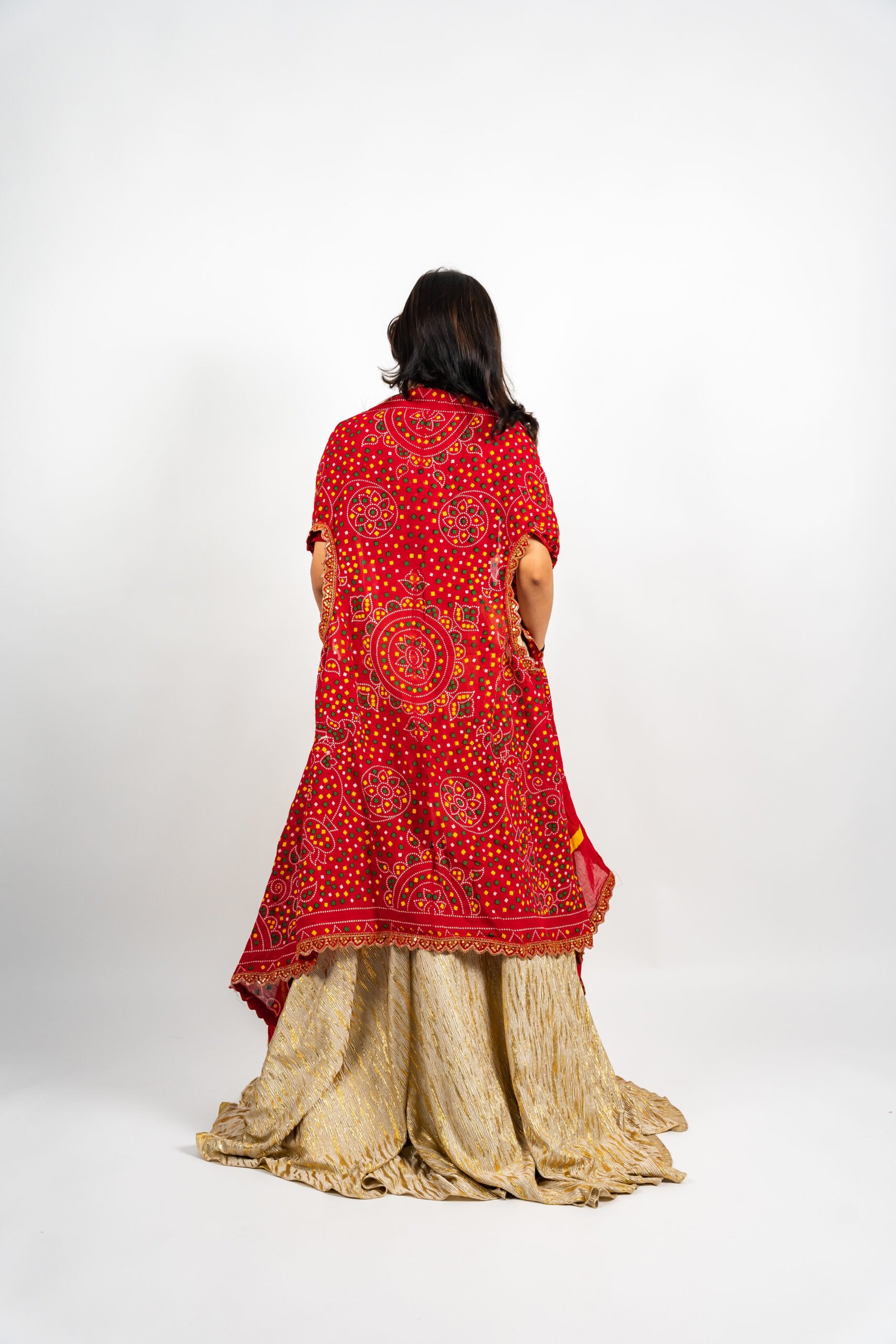 A chunri print shrug is a stylish fusion of tradition and modern wear.