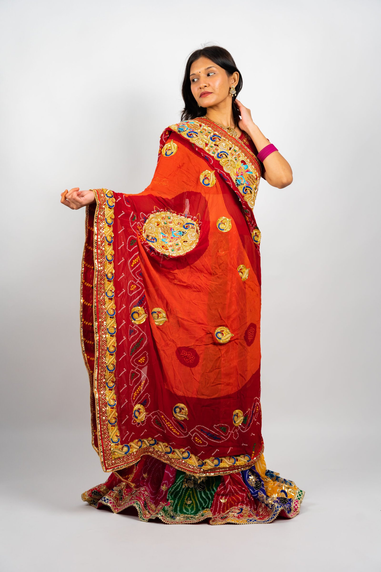 2.Embellished with gota patti, zari, or zardozi borders, giving it a festive
