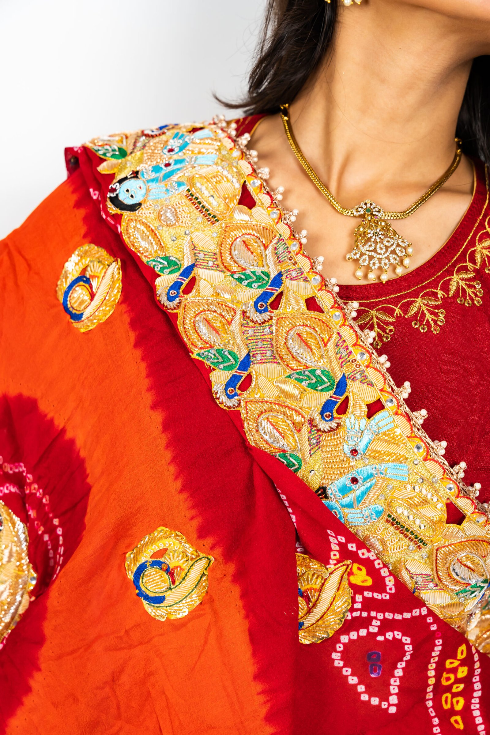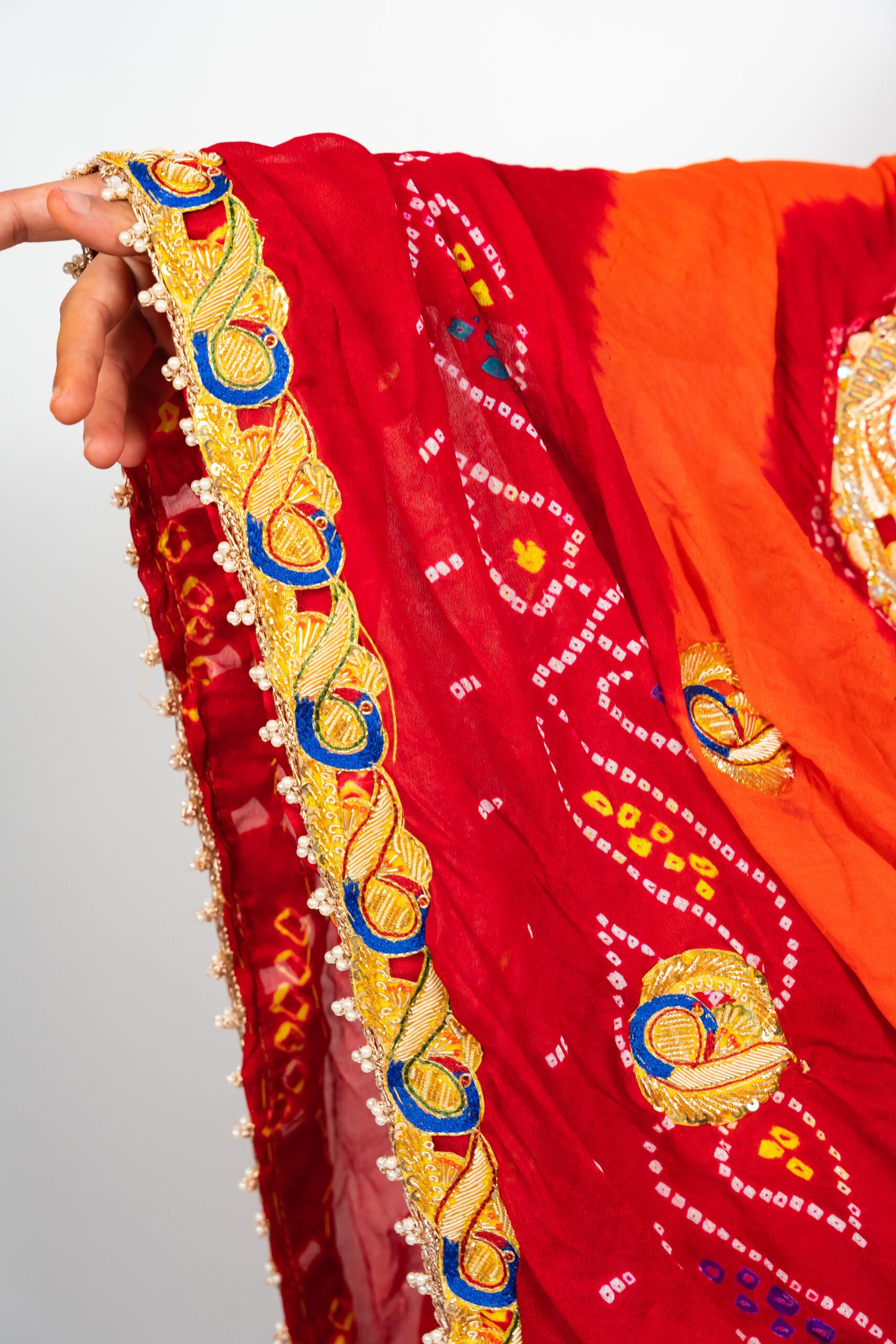 2.Embellished with gota patti, zari, or zardozi borders, giving it a festive