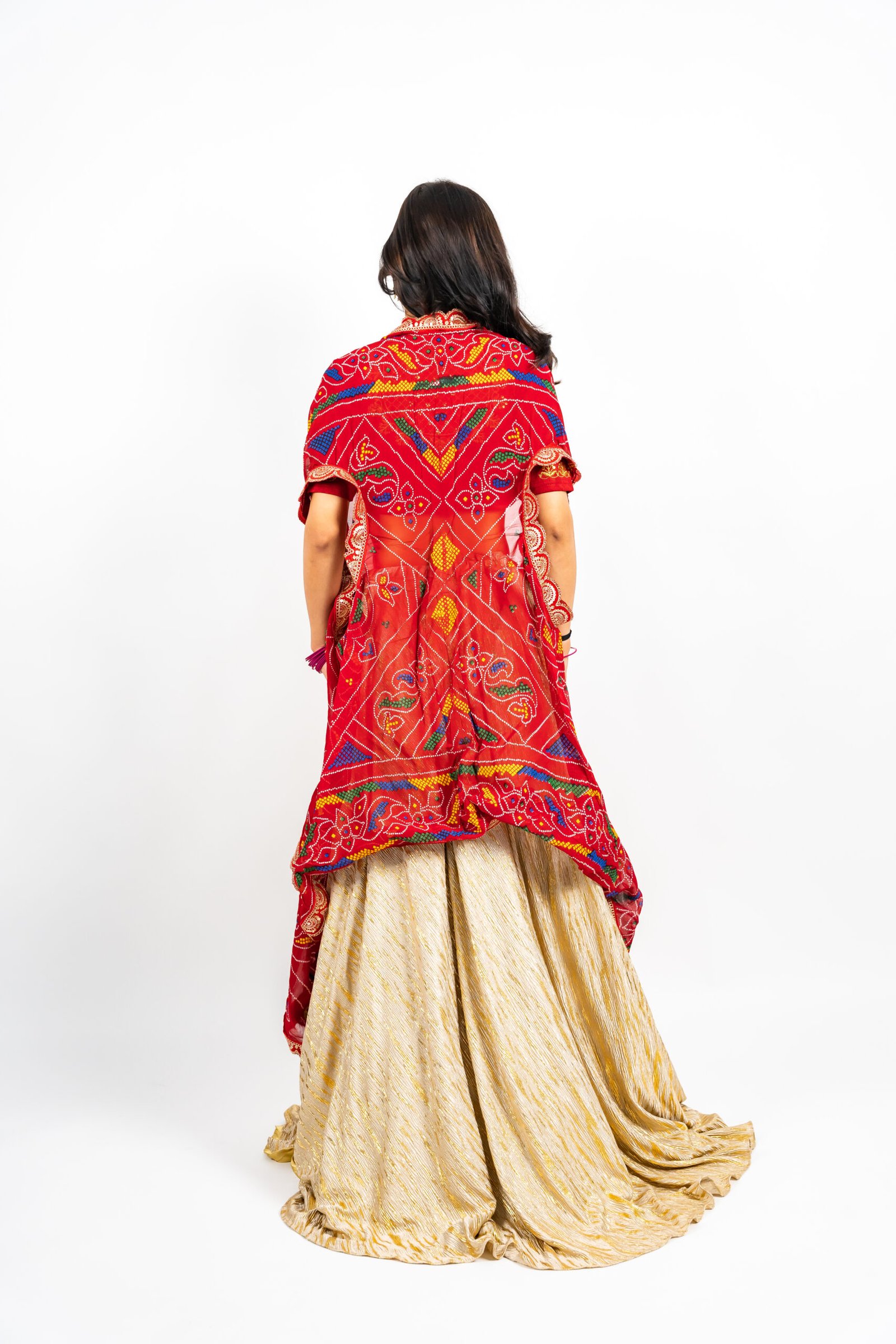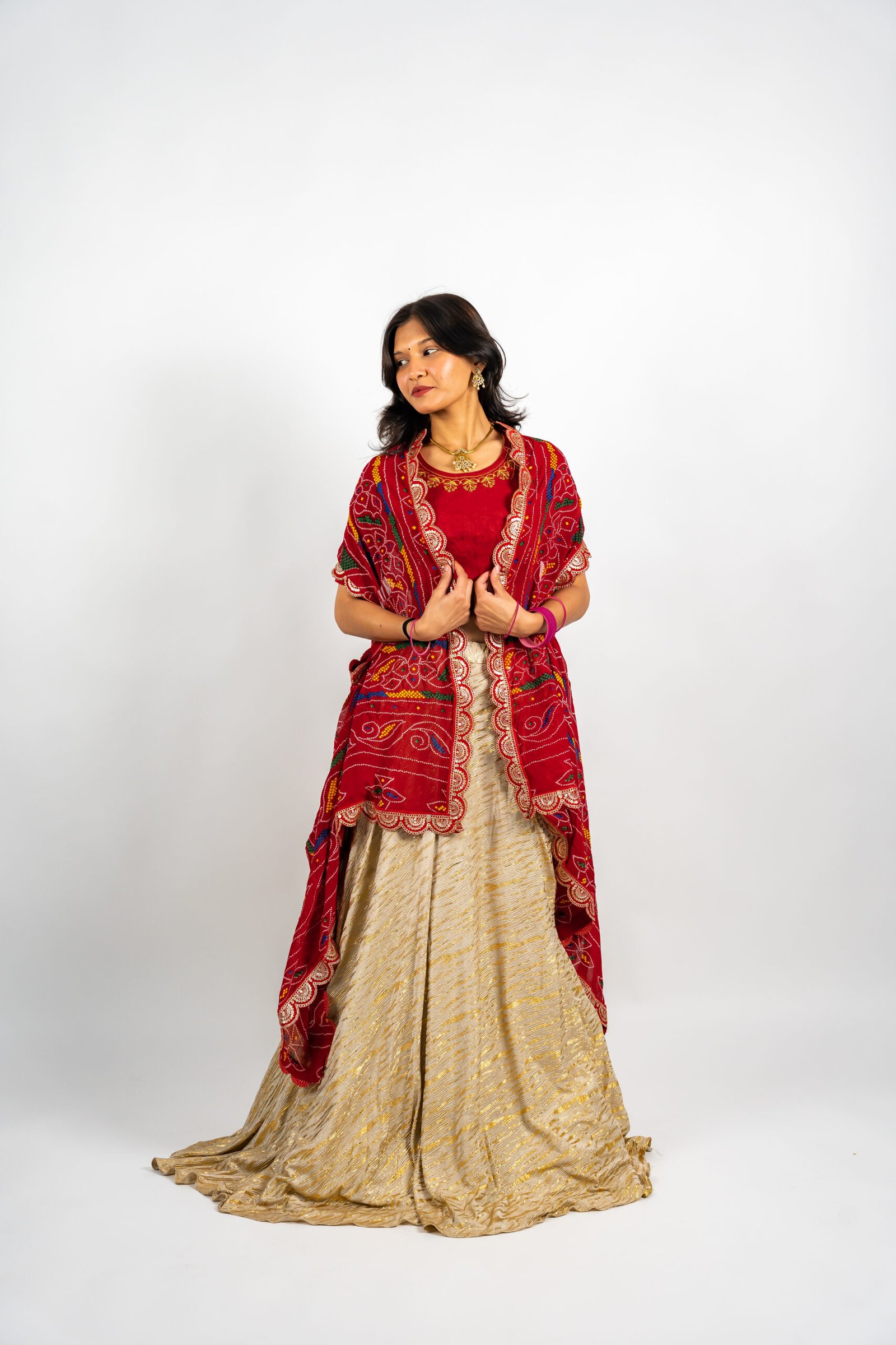 A chunri print shrug is a stylish fusion of tradition and modern wear.