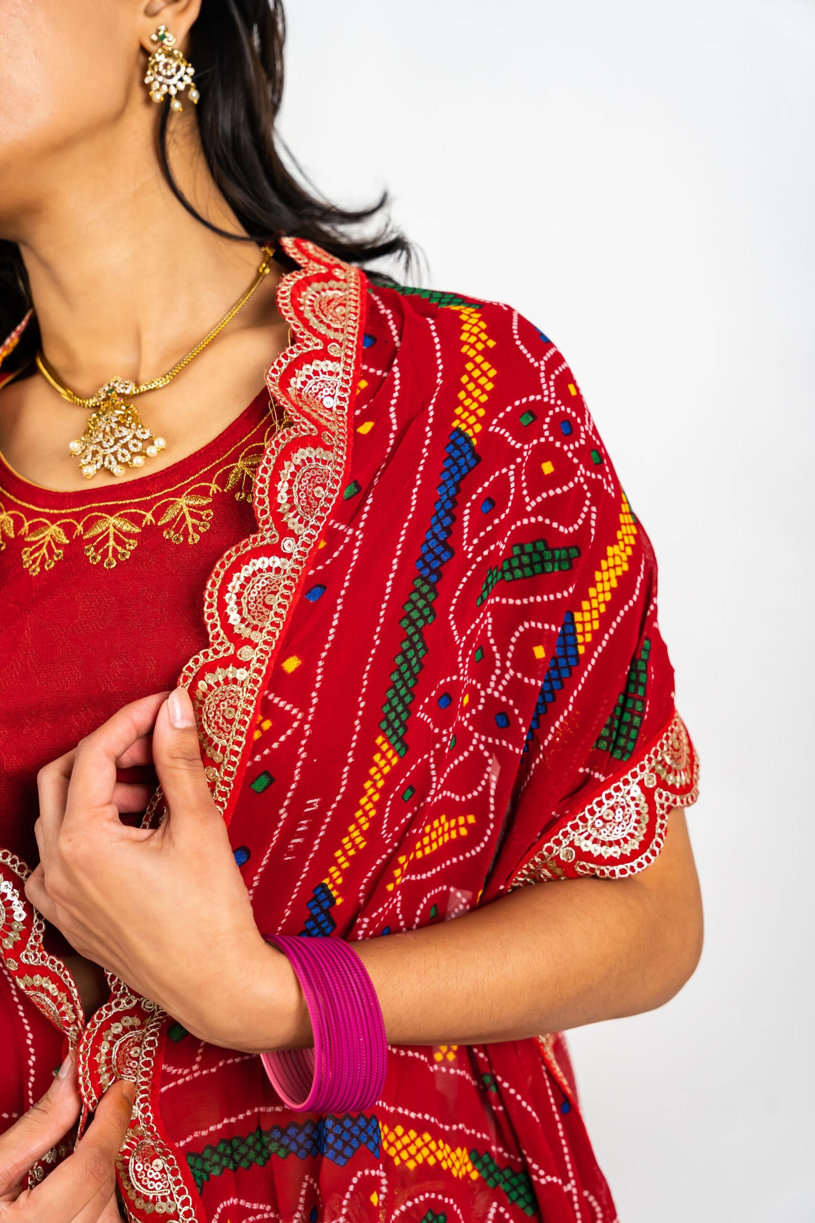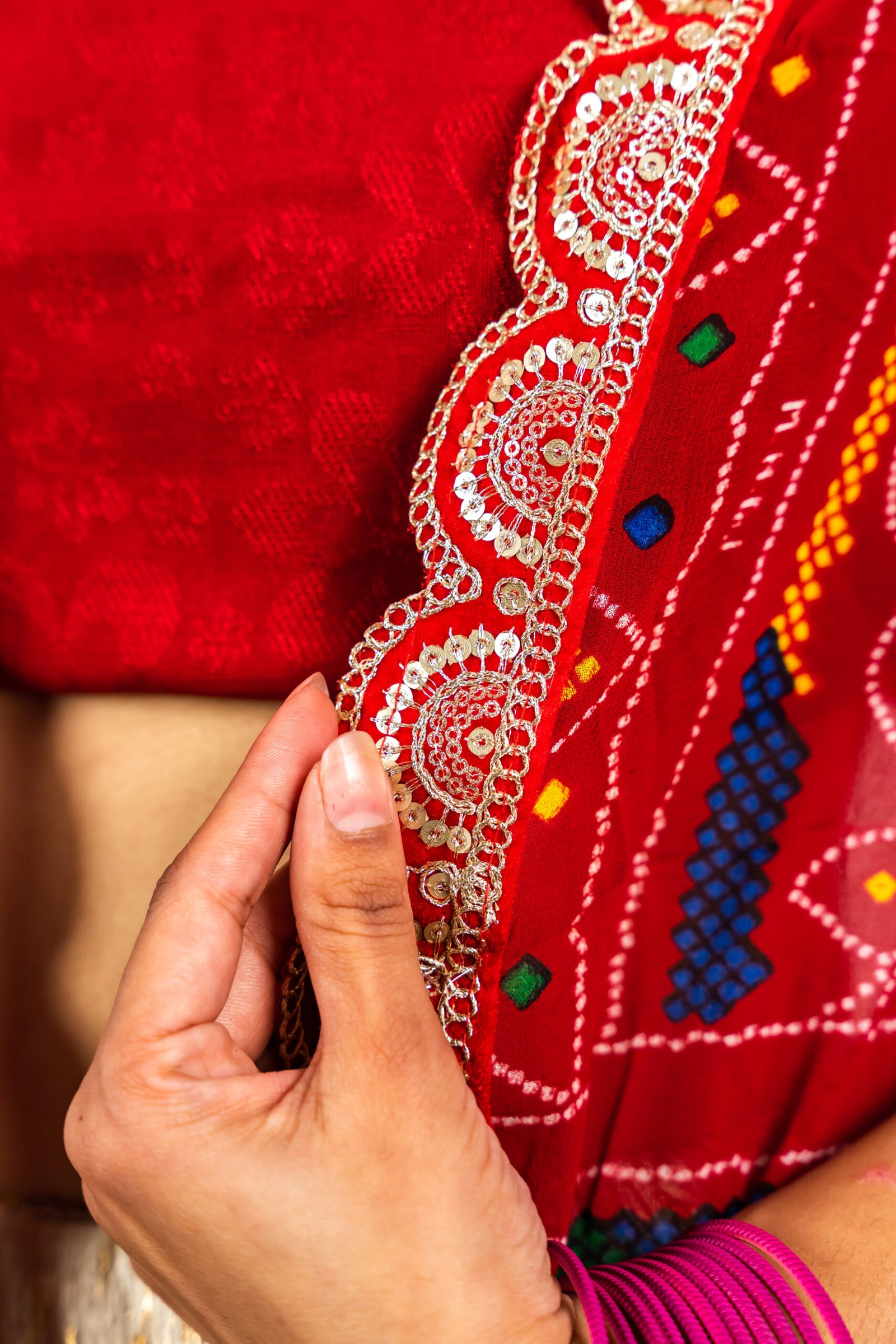 | Work Style | mix of Georgette chunri with machine border embroidery |