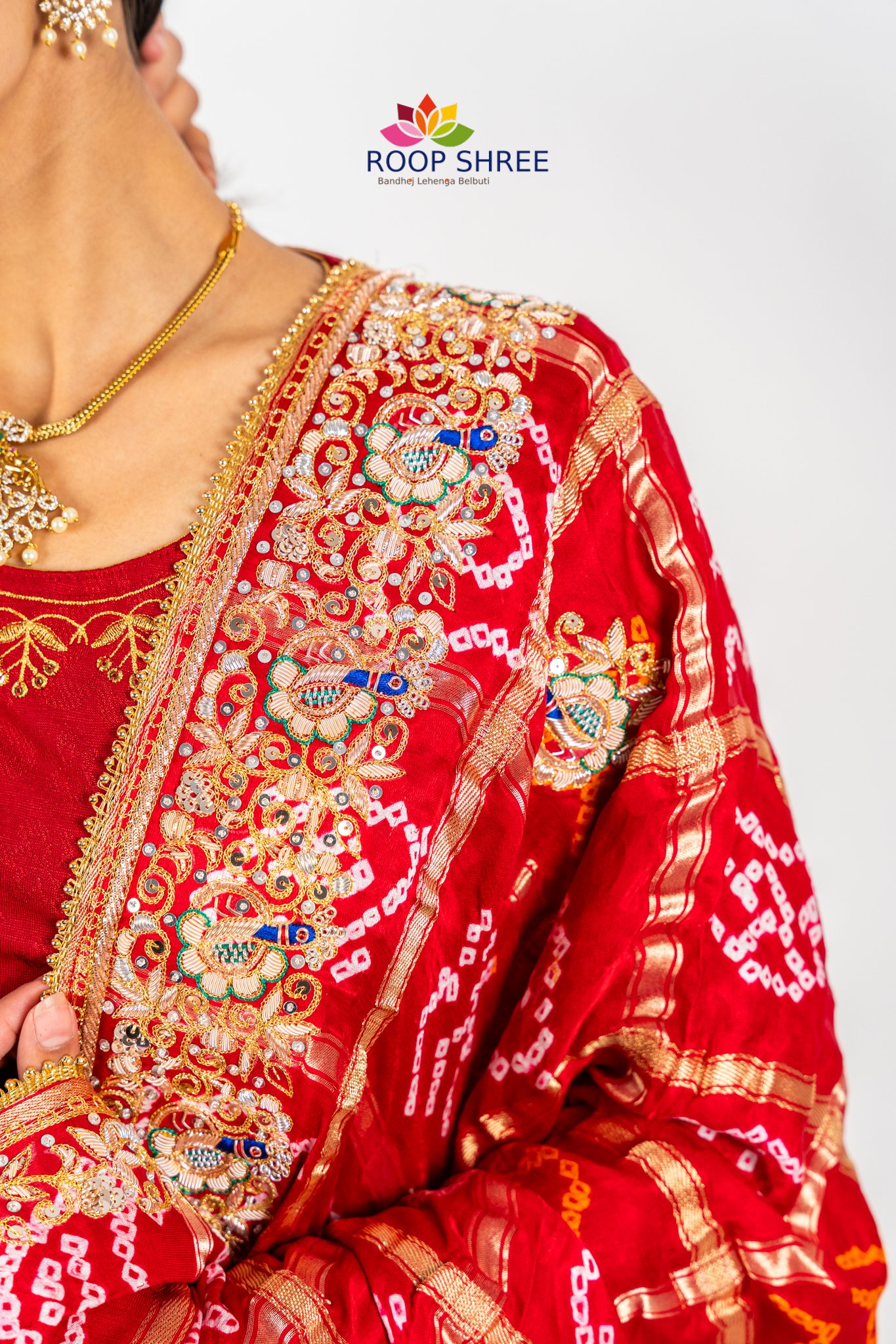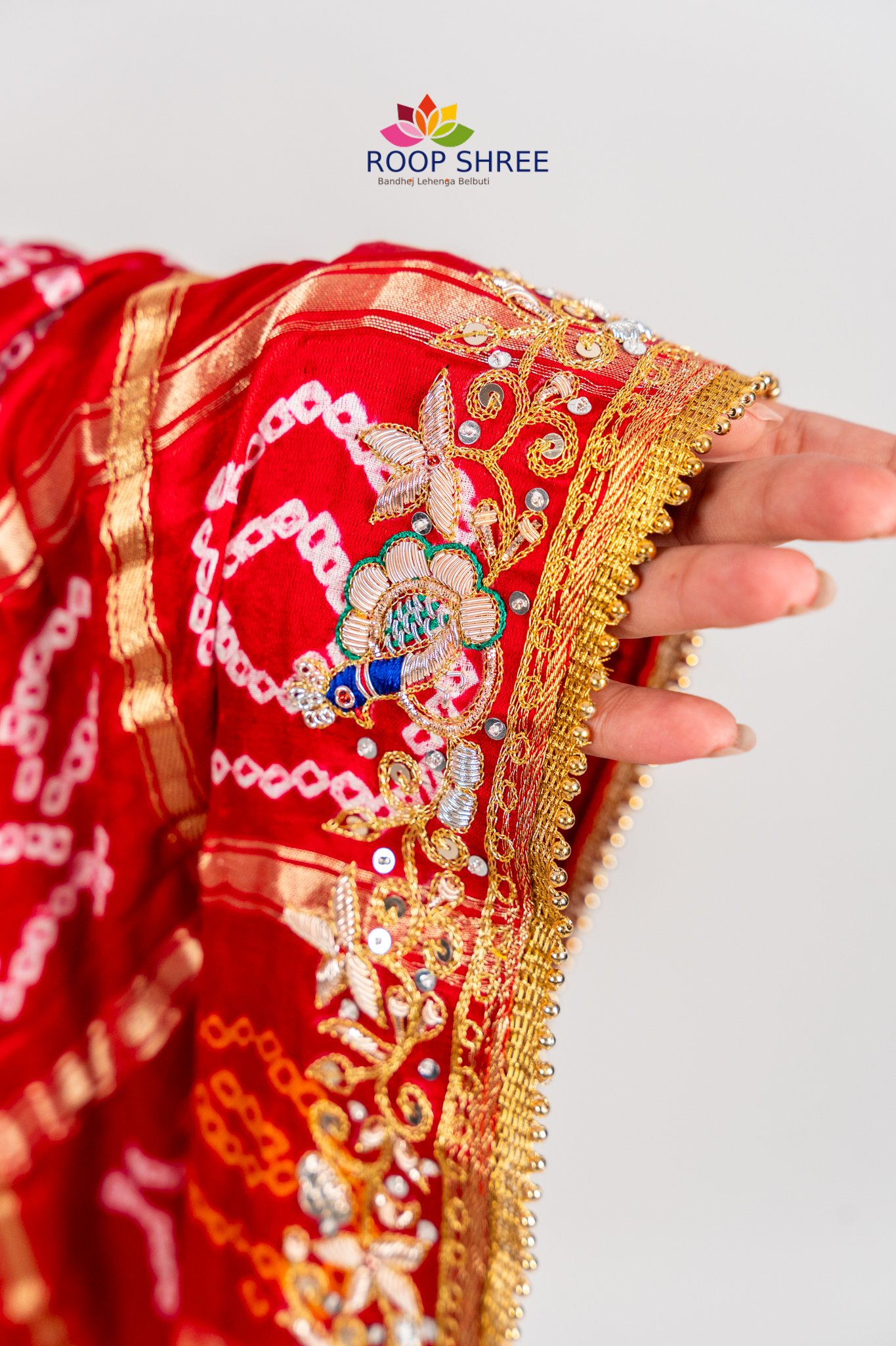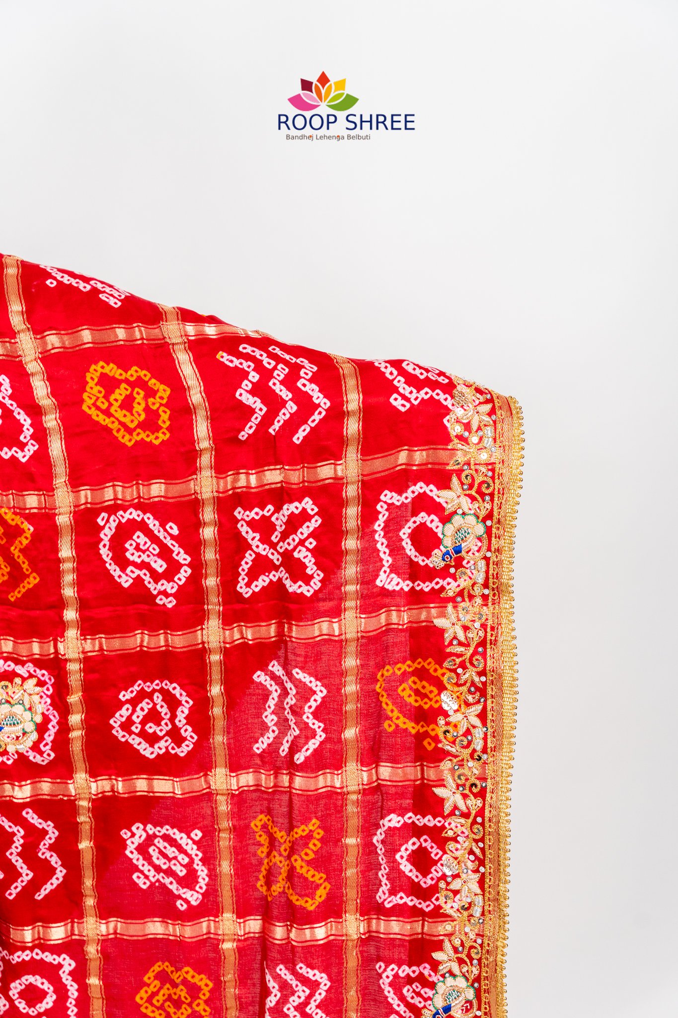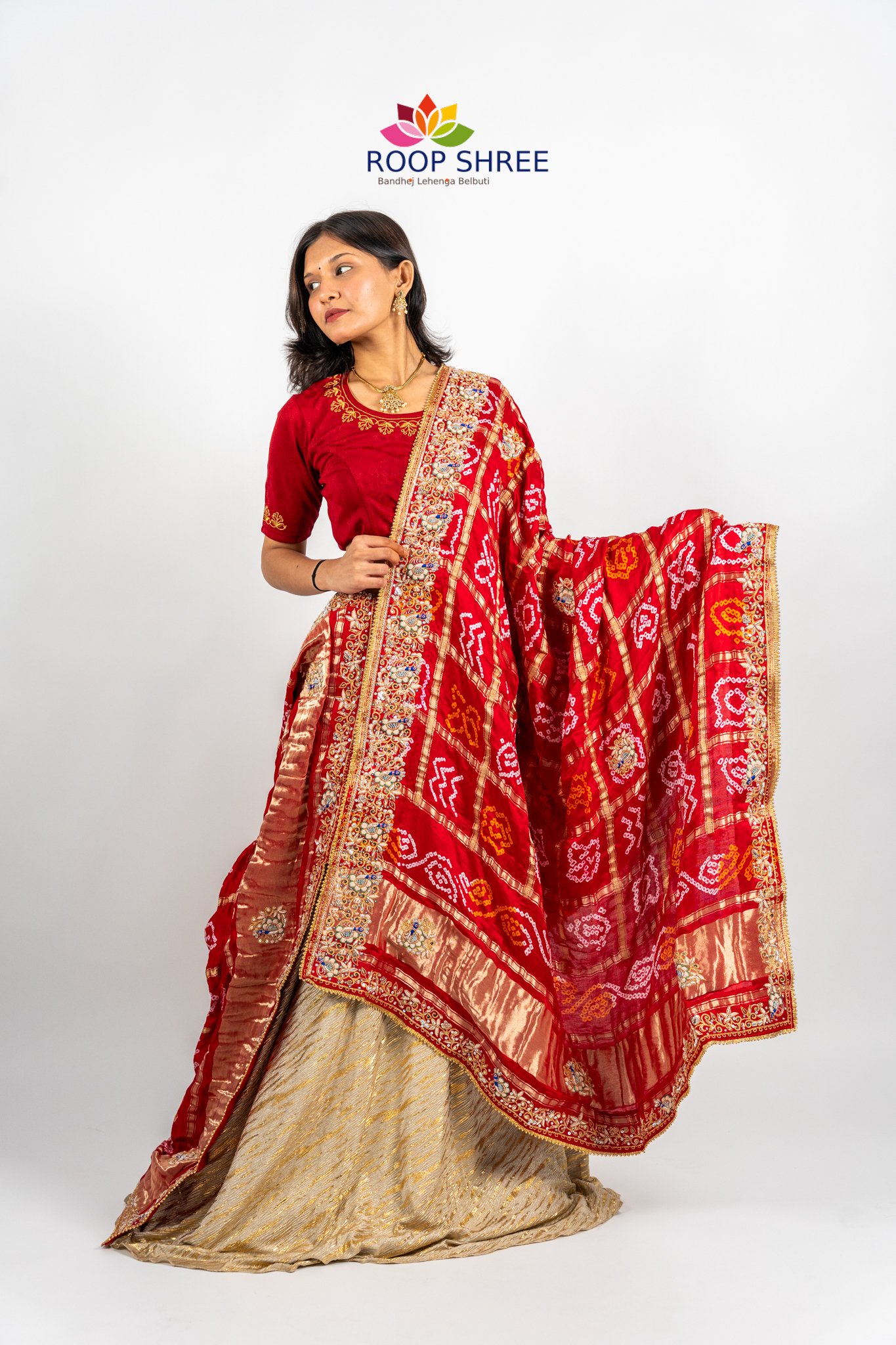 Heritage Bandhani Gajji Silk Dupatta with Royal Zardozi