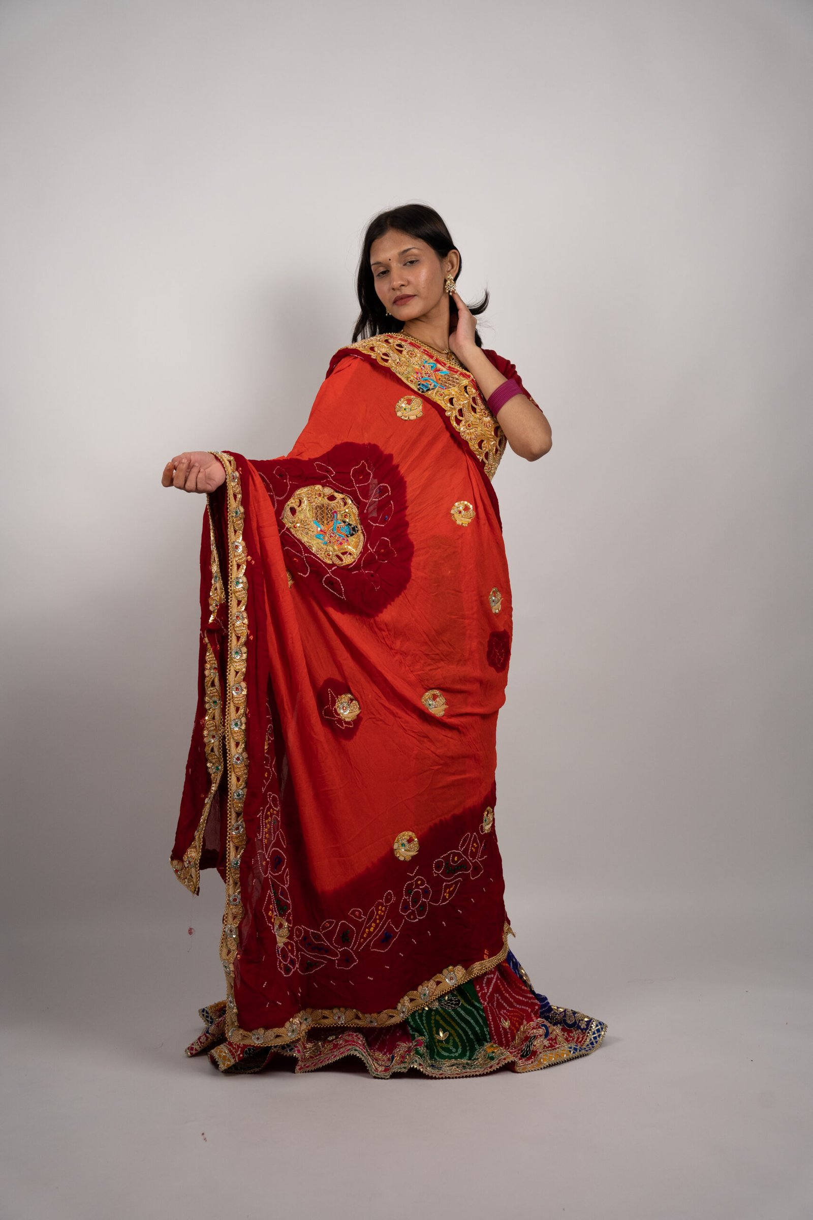 2.Embellished with gota patti, zari, or zardozi borders, giving it a festive
