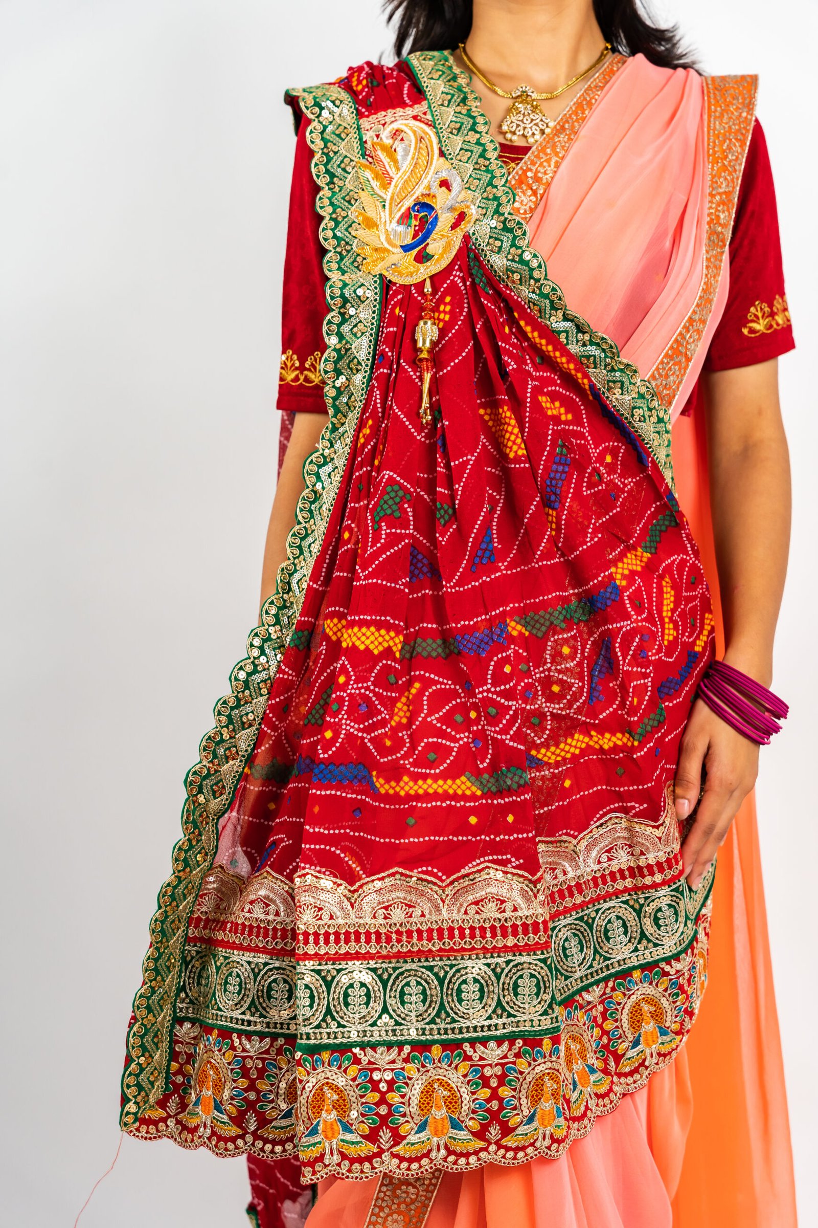 Elegant Odhna featuring Kalash Buta Brooch design on one side in Peela, Chunri AND Pomcha Available.”