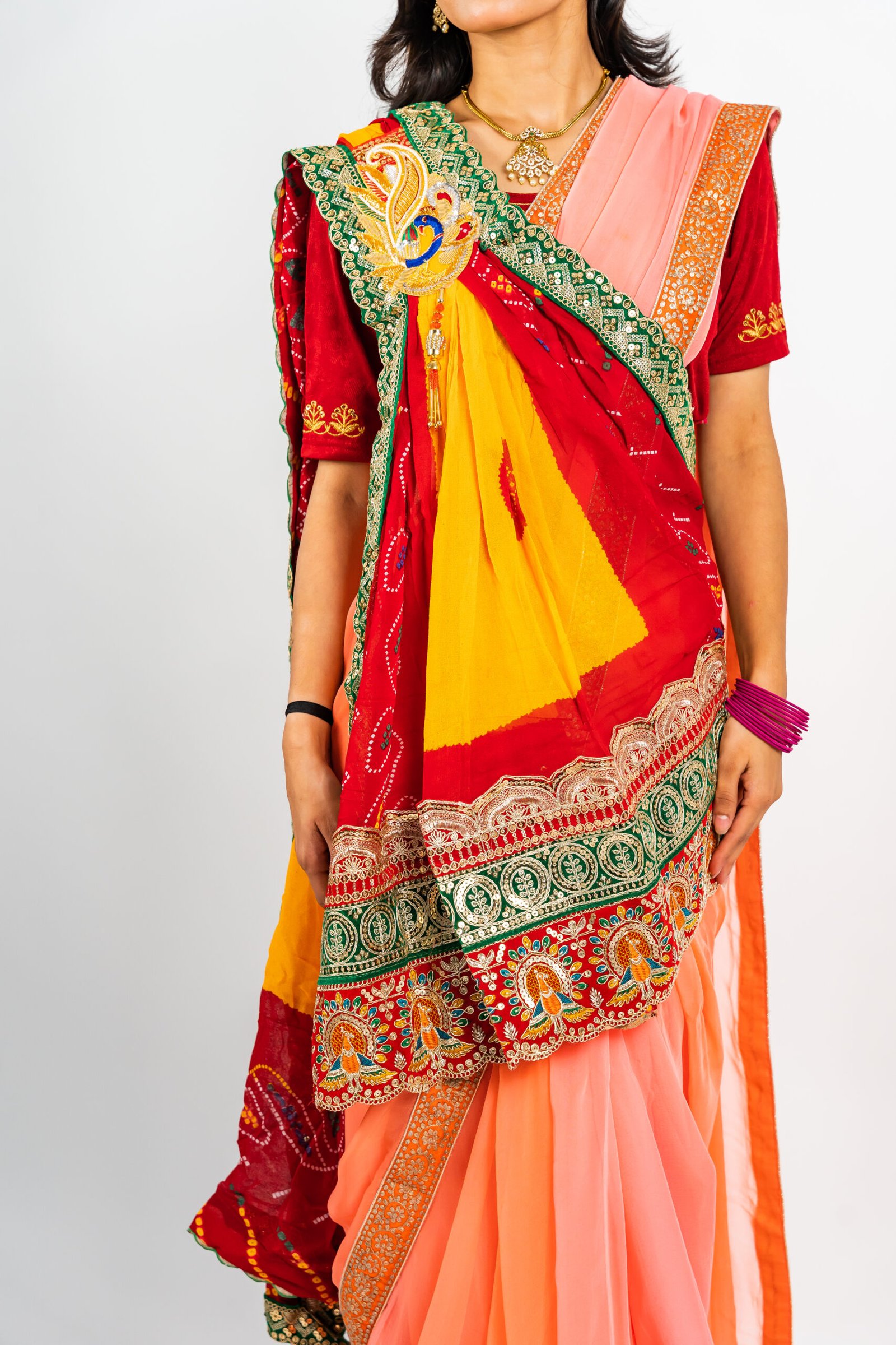 Soft and lightweight georgette fabric with a beautiful bandhej-style print.