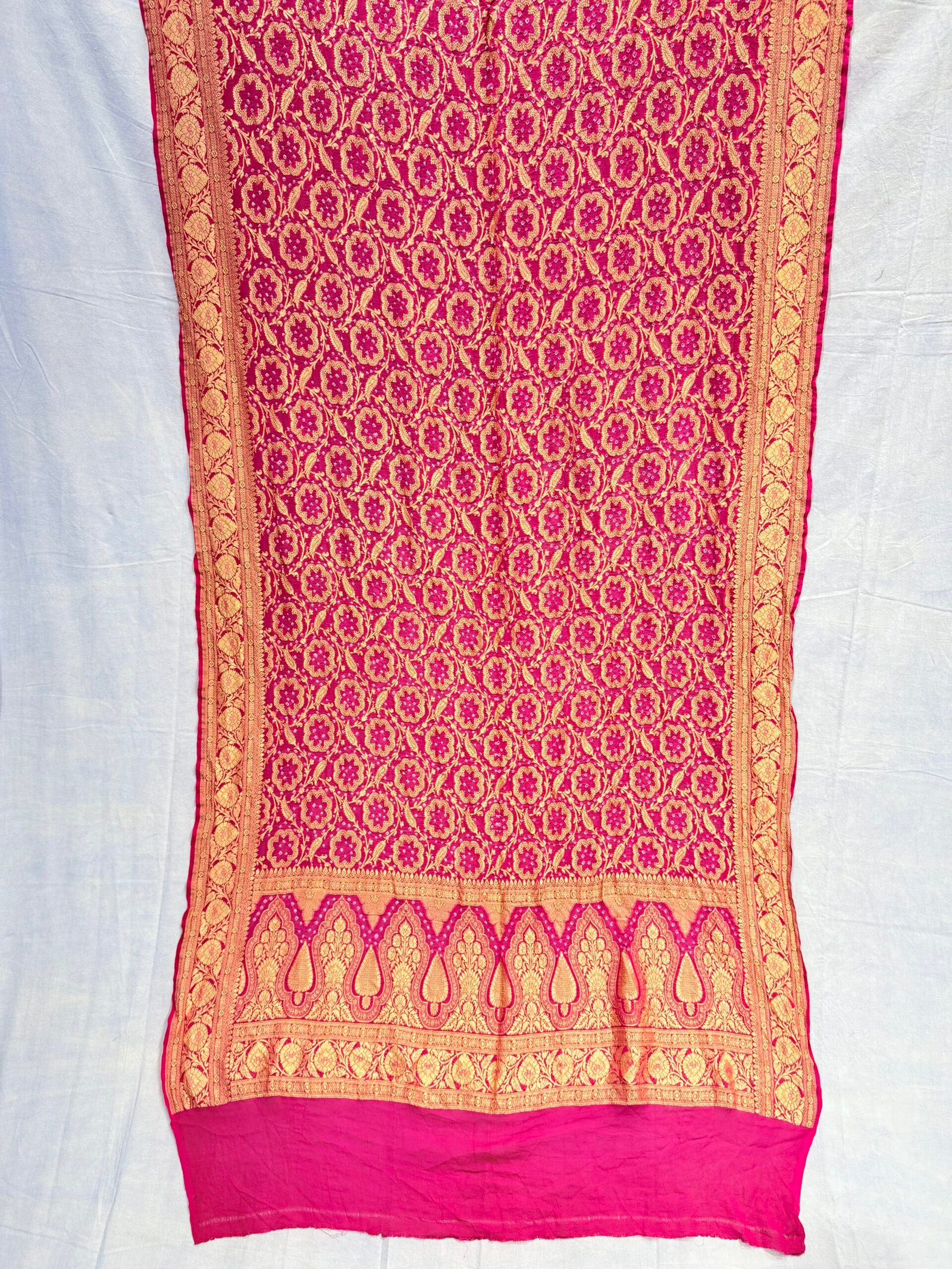 Kadhi Georgette Bandhej is often used for dupattas, sarees, and odhnas.